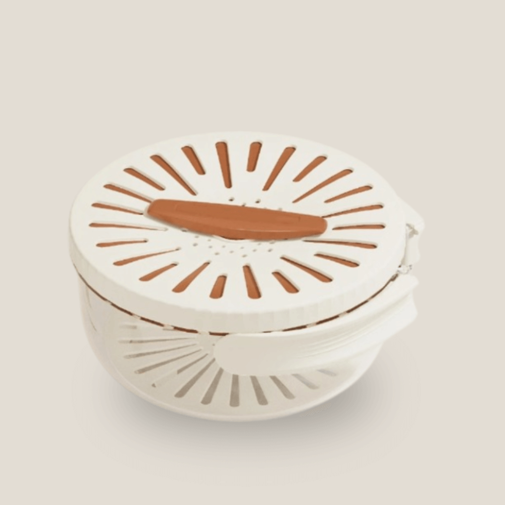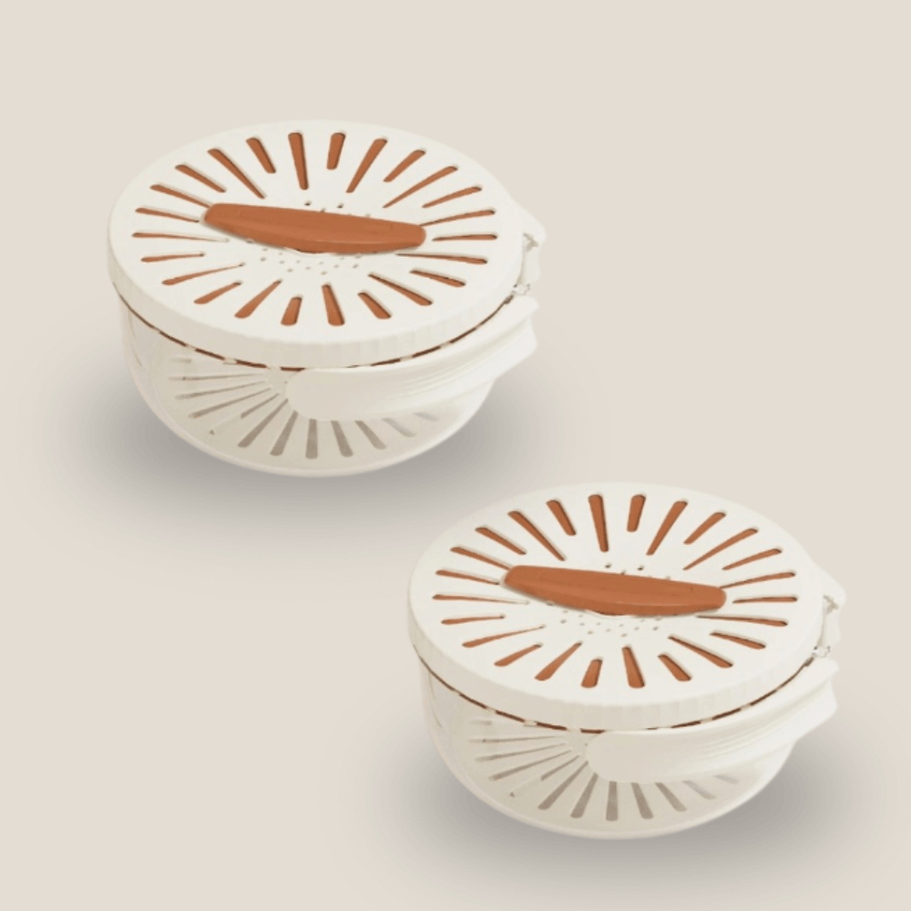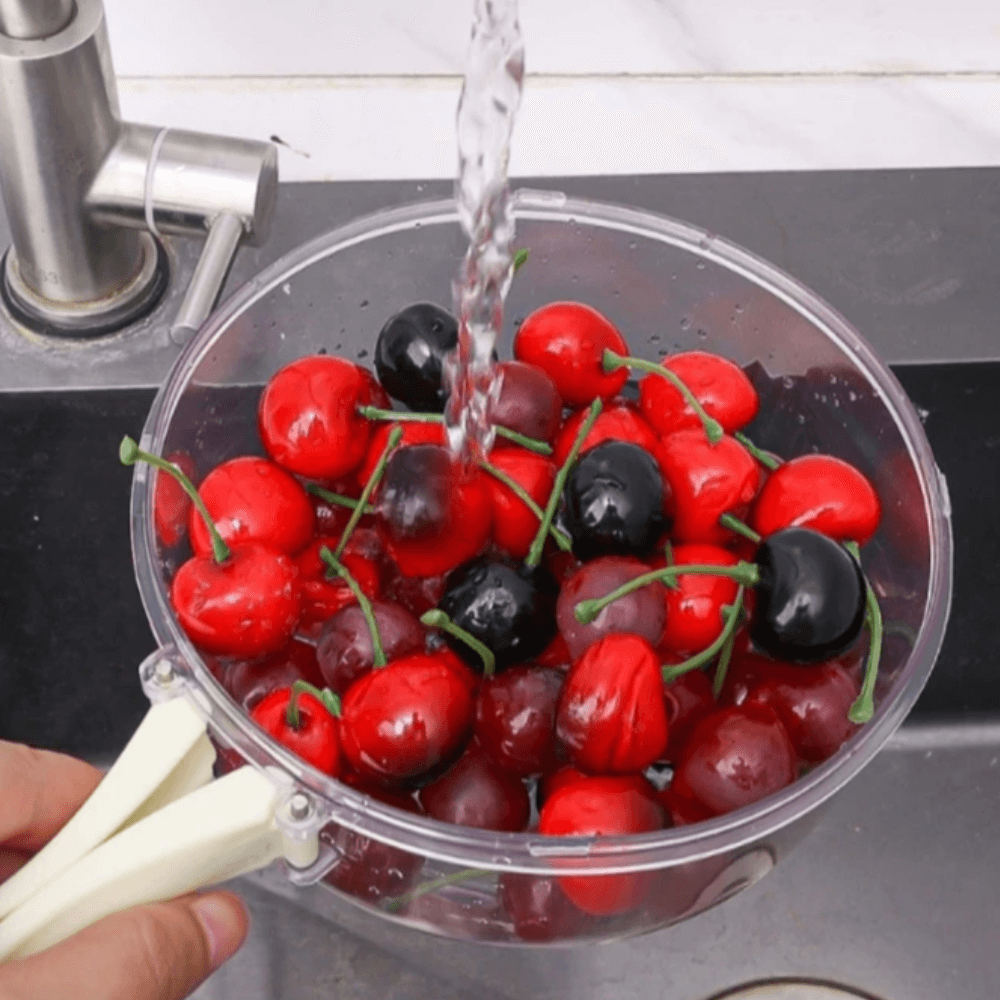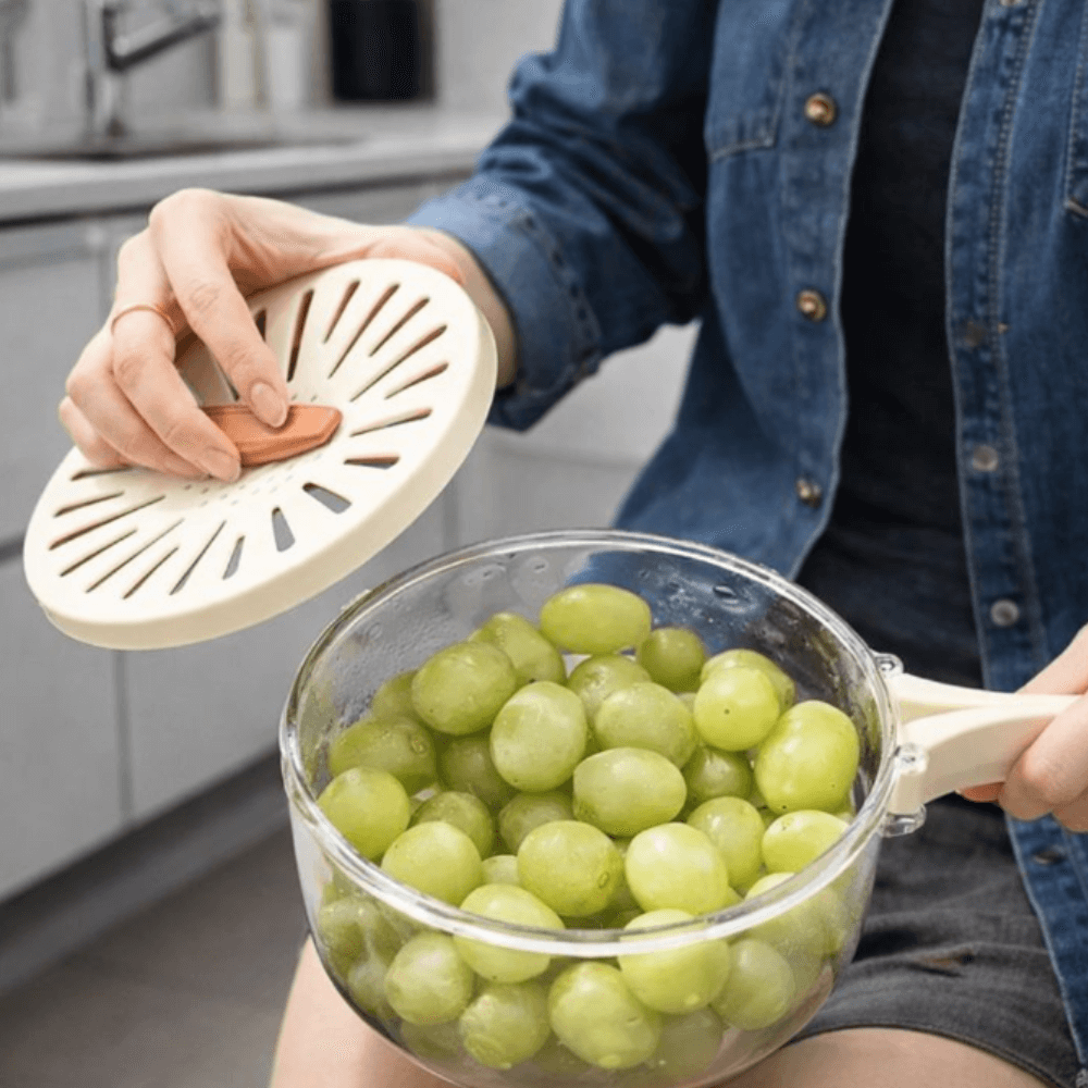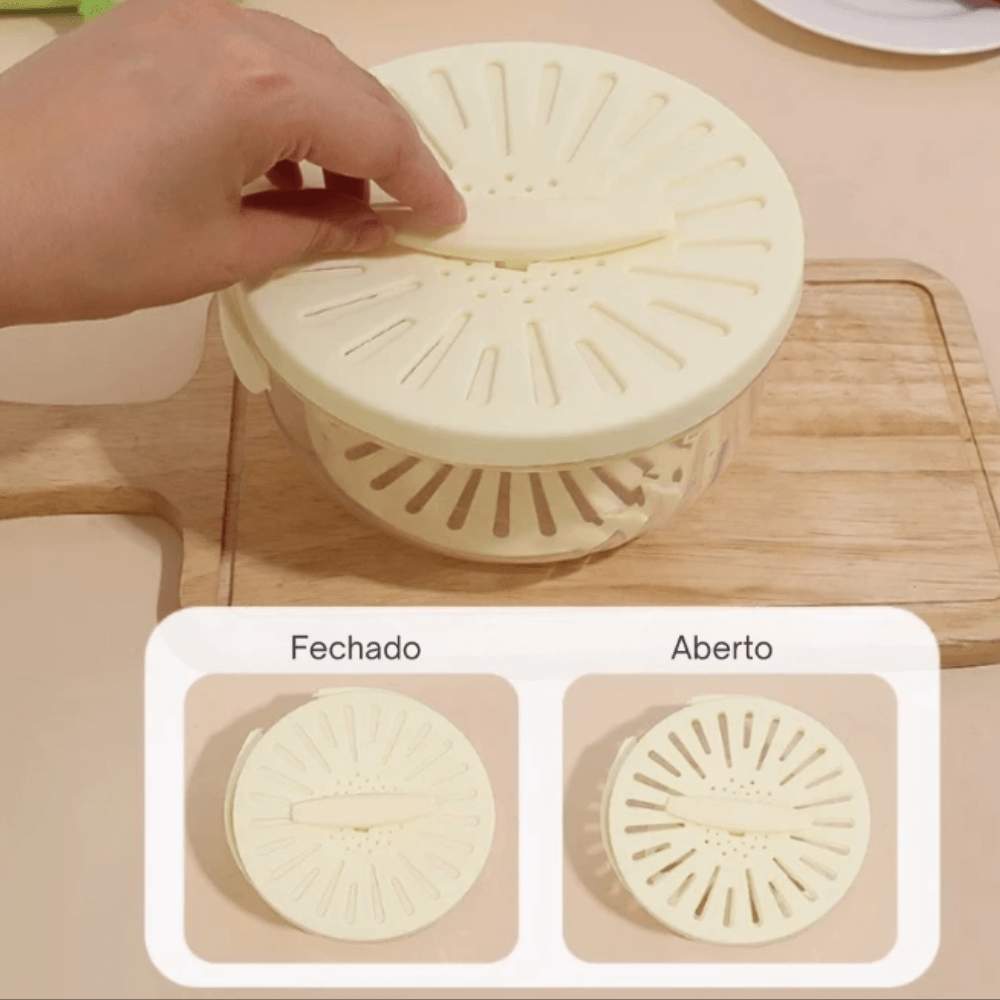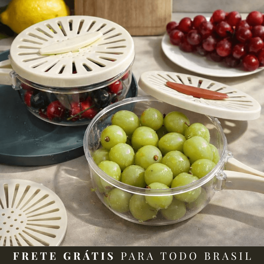 Design inteligente com camada dupla, que separa a água das frutas, mantendo tudo seco e organizado. Compacto, funcional e indispensável na cozinha.