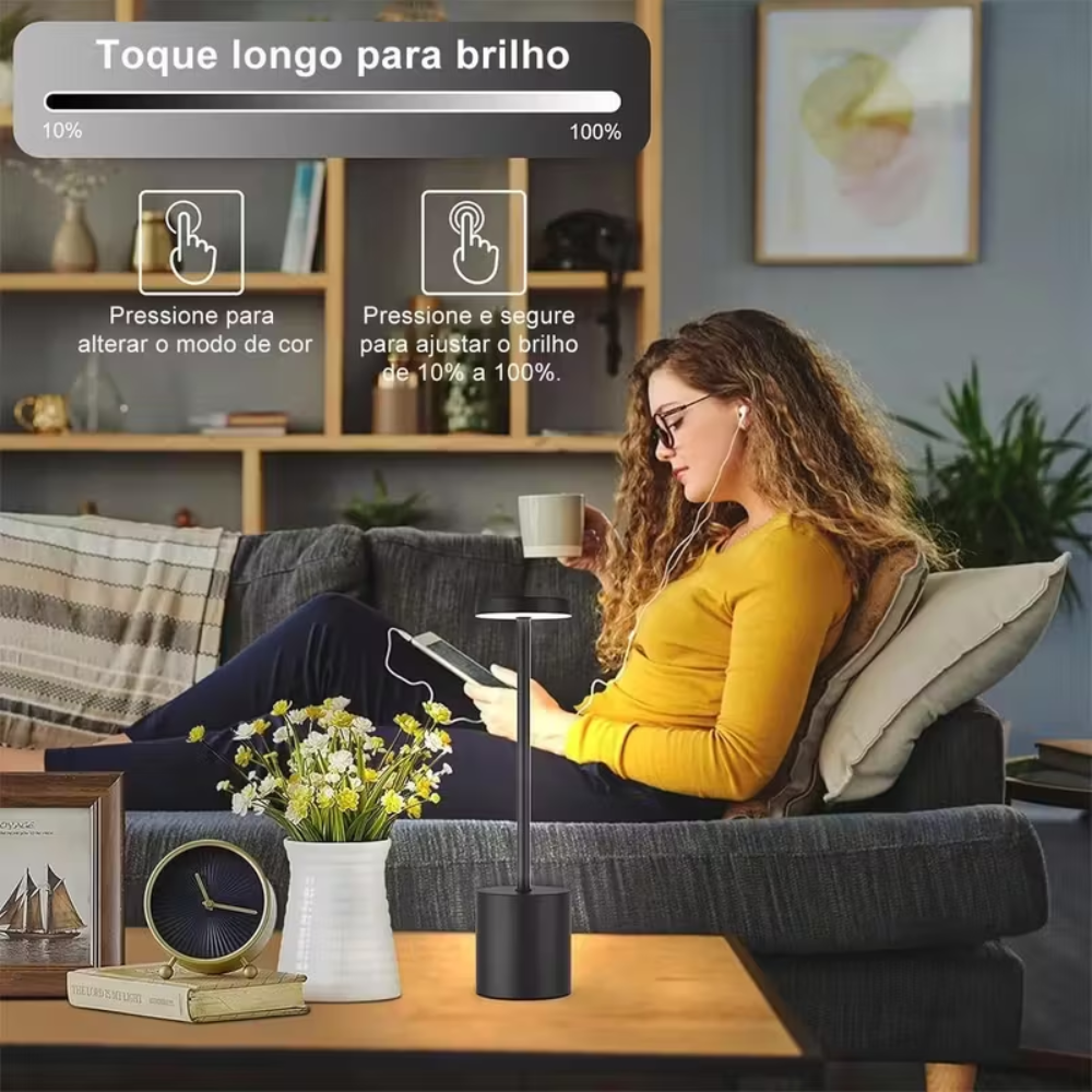 Com acendimento ao toque e 3 tons de luz, ela cria o clima ideal para cada momento — seja para relaxar, ler ou decorar com charme.